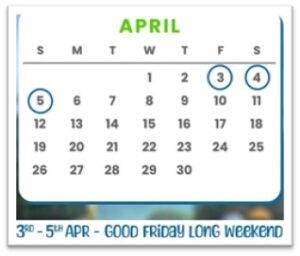 April 2026 Good Friday long weekend