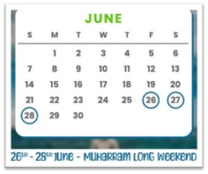 June 2026 long weekend for Muharram