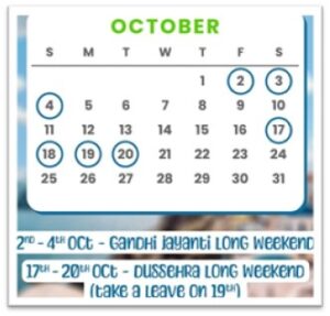 - The Hack: Oct 2 is a Holiday (Gandhi Jayanti). No Leave Needed! Pack your bags for Thursday night.
