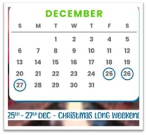 December 2026 Christmas long weekend